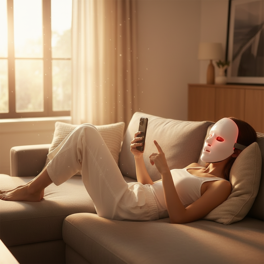 Avec notre masque facial LED, profitez d’un soin professionnel à domicile en toute simplicité. Des résultats visibles sans rendez-vous ni frais d’institut.